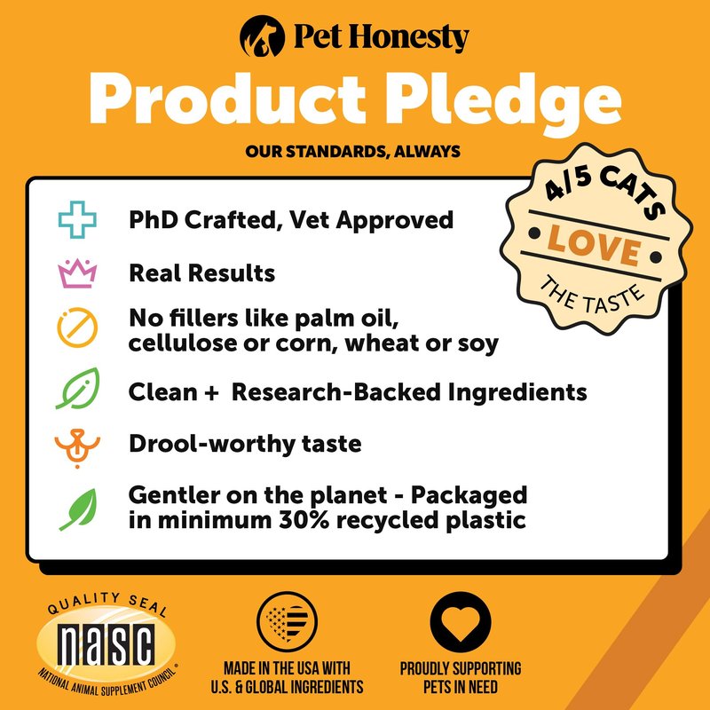 - Pet Honesty Pledge: A taste your pet will love and results you can trust. Made with the most effective natural and premium ingredients. Formulated without corn, wheat, or soy. No artificial preservatives, colors, or flavors.