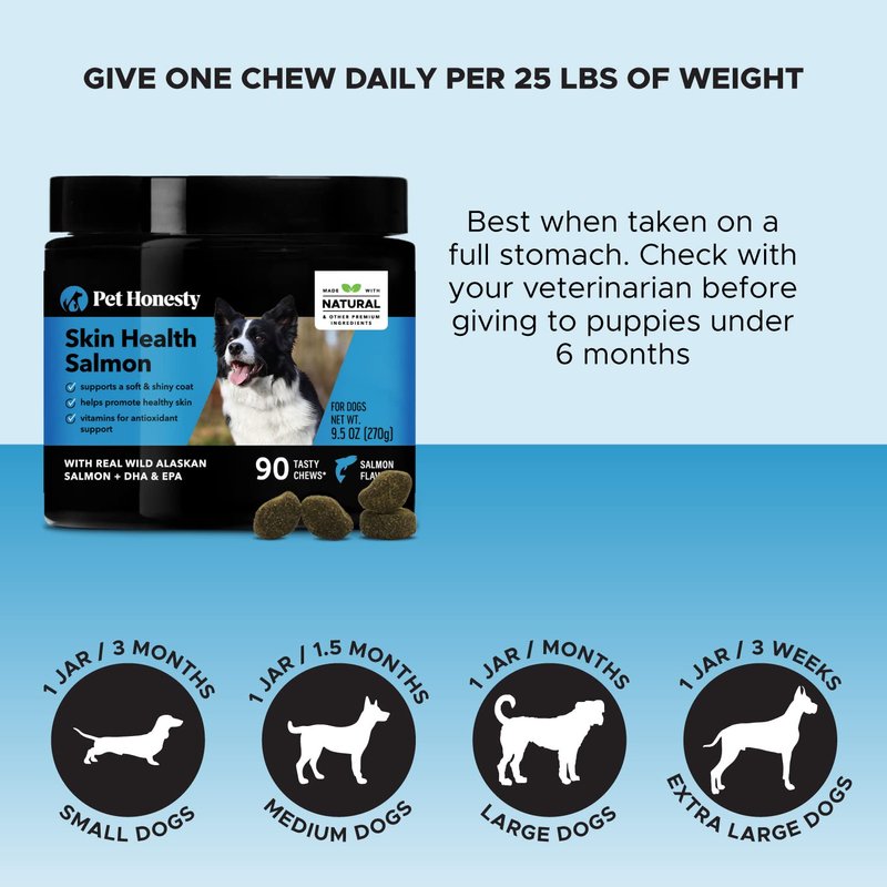 Pet Honesty Salmon Skin Health - Itch Relief for Dogs, Omega 3 Fish Oil for Dogs, Natural Salmon Oil for Dogs Chews for Healthy Skin & Coat, May Reduce Shedding, Dog Fish Oil Supplements - (90 Ct)