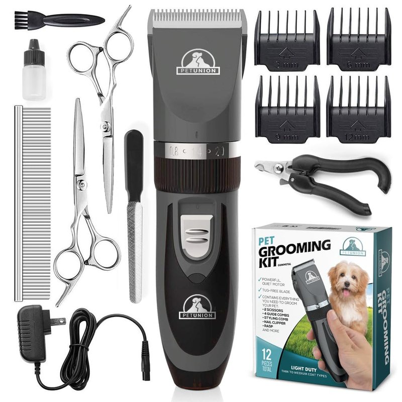 Pet Union Professional Dog Grooming Kit - Rechargeable, Cordless Pet Grooming Clippers & Complete Set of Dog Grooming Tools. Low Noise & Suitable for Dogs, Cats and Other Pets