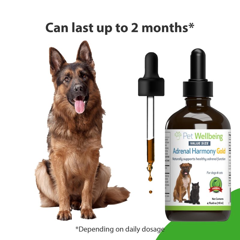 Pet Wellbeing Adrenal Harmony Gold - Vet-Formulated - for Dog Cushing's, Adrenal Health, Cortisol Balance - Natural Herbal Supplement