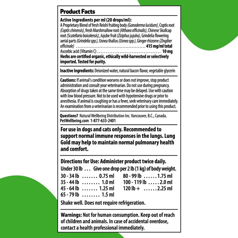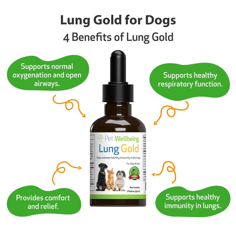 Pet Wellbeing Lung Gold for Dogs - Vet-Formulated - Lung & Respiratory Immune Support, Open Airways, Easy Breathing - Natural Herbal Supplement 2 oz (59 ml)
