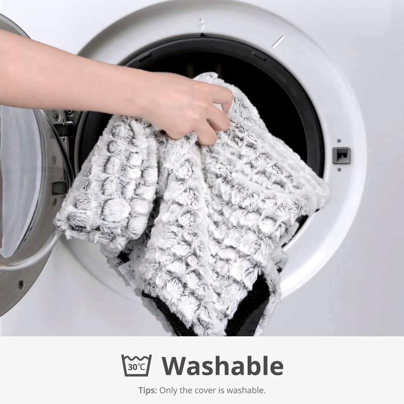 Petace pet bed turns any pet bed into your pet's favorite lounging place. The upgraded cover material of faux fur provides more warmth and softness. Simply place the heating pad onto or on top of any pet bed for gentle warmth that gradually radiates to the surface of the bed. 2 sizes available: 24"x 18" / 30" x 20" Material of cover: washable faux fur Middle: heat reflecting layer & thermal insulation Back: non-slip rubber base