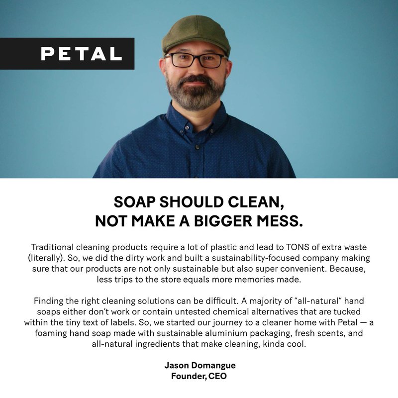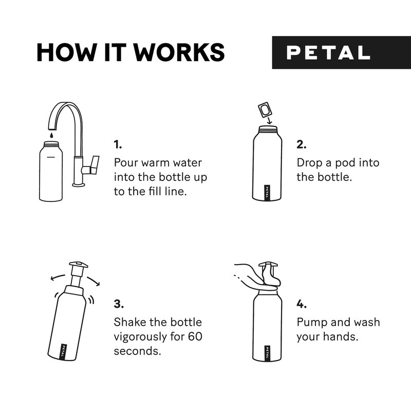 This foaming soap dispenser starter kit includes everything you would require for sustainable hand-washing! It’s sharp look would make it a great soap dispenser for kitchen sink or bathroom. Our bottle is made of 100% recyclable lightweight aluminum with a pump made from recycled plastics. Included in the kit are also 4 soap refill pods that dissolve completely in water so there is no mess and no trash. This zero waste soap dispenser kit keeps your hands clean and the planet, it is a must-have for those who love using sustainable products!