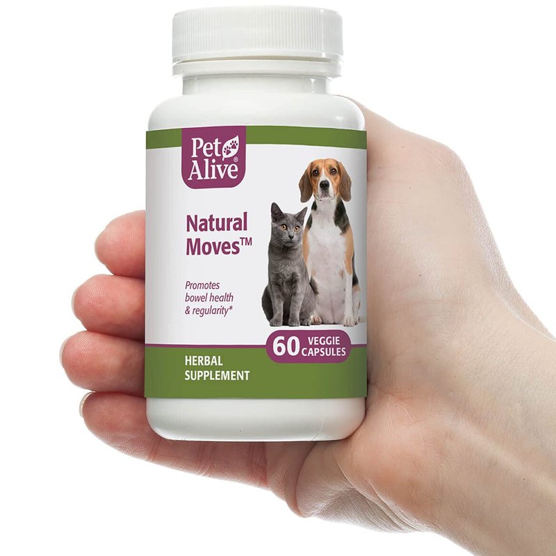 PetAlive Natural Moves - All Natural Herbal Supplement Promotes Bowel Health and Regularity in Cats and Dogs - 60 Veggie Caps