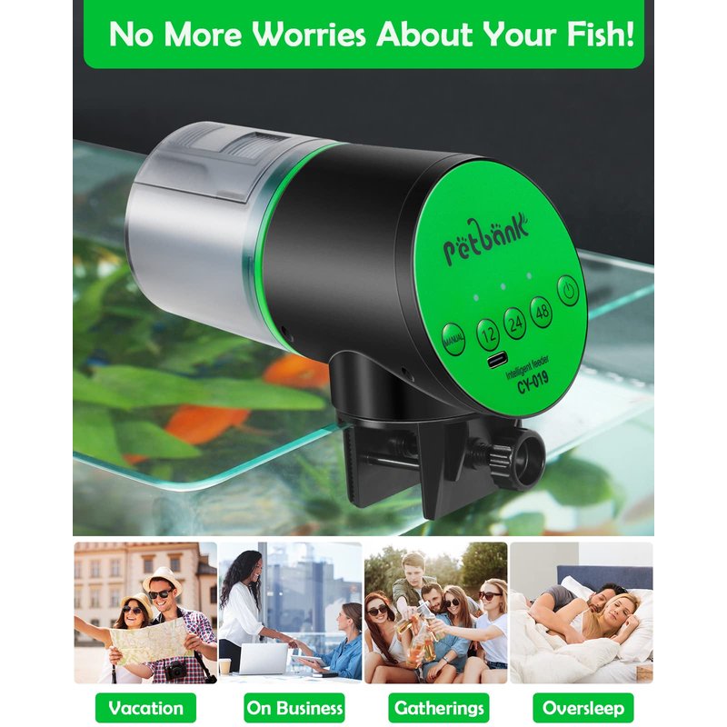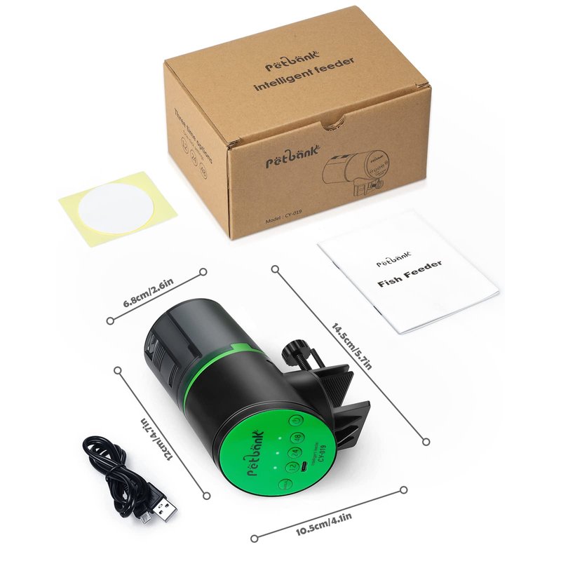 Petbank Automatic Fish Feeder for Aquarium - Rechargeable Food Dispenser for Fish Tank, Vacation Fish Feeder Timer with USB Charger Cable