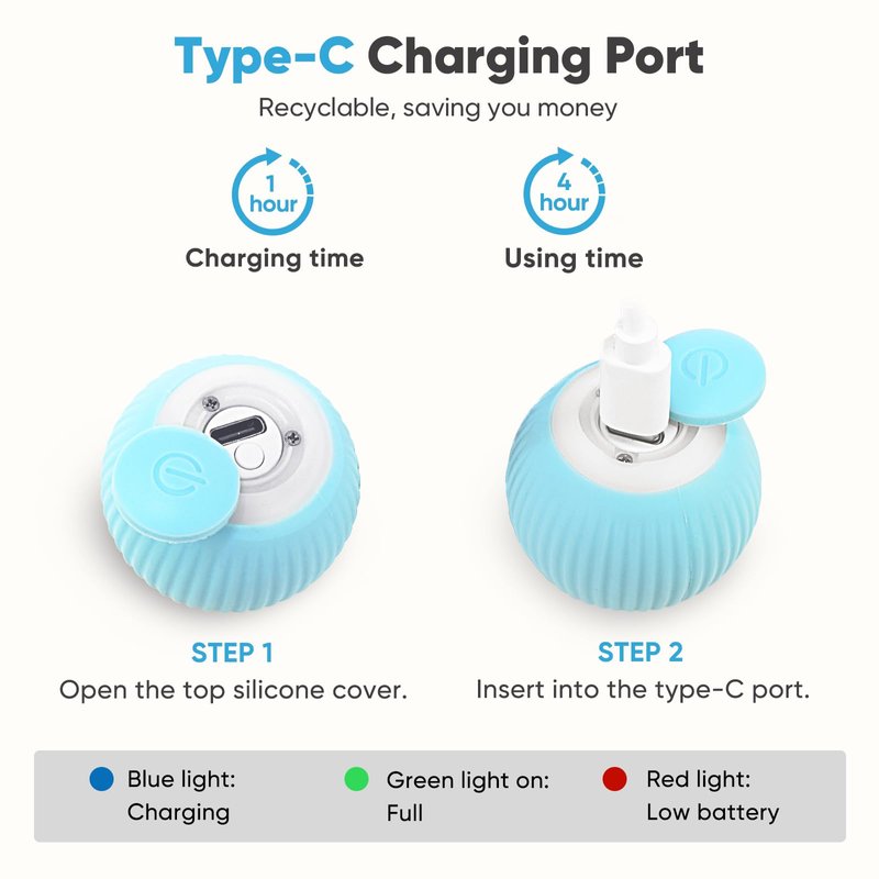 - Efficient Charging for Endless Play: Petbobi cat ball toy's Type-C rechargeable design is both convenient and economical, ensuring quick charges and maximum playtime for your cat.