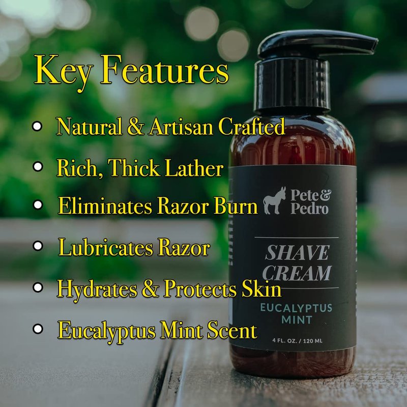 Pete & Pedro SHAVE CREAM - Natural & Artisan-Crafted, Eucalyptus Mint Scent | Rich & Thick Lather, Great For Sensitive Skin, Less Shaving Irritation/Razor Burn/Ingrowns | As Seen on Shark Tank, 4 oz.