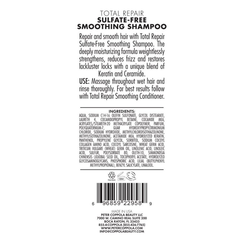 PETER COPPOLA Total Repair Cleansing & Smoothing Sulfate-Free Shampoo - For Color Treated Hair – Color Safe, Sodium Chloride-Free Keratin Shampoo – Strengthens and Repairs Damag