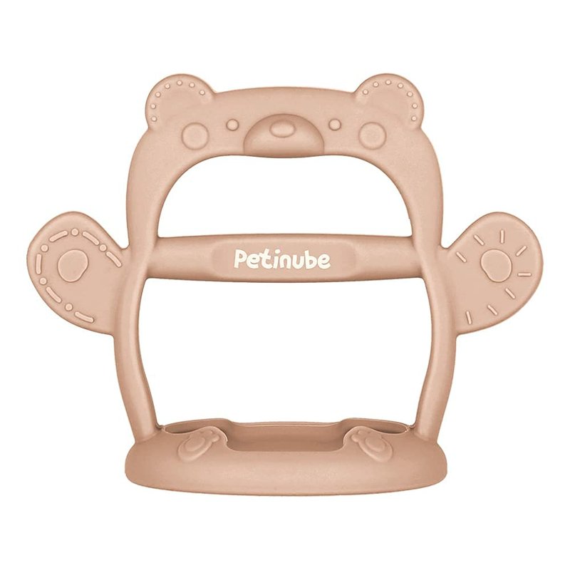 PETINUBE Anti-Dropping Silicone Baby Wrist Teether Soothing Pacifier for Infants 3+ Months Babies, Pack of 1, Made in Korea (Bear-Cozy Beige)