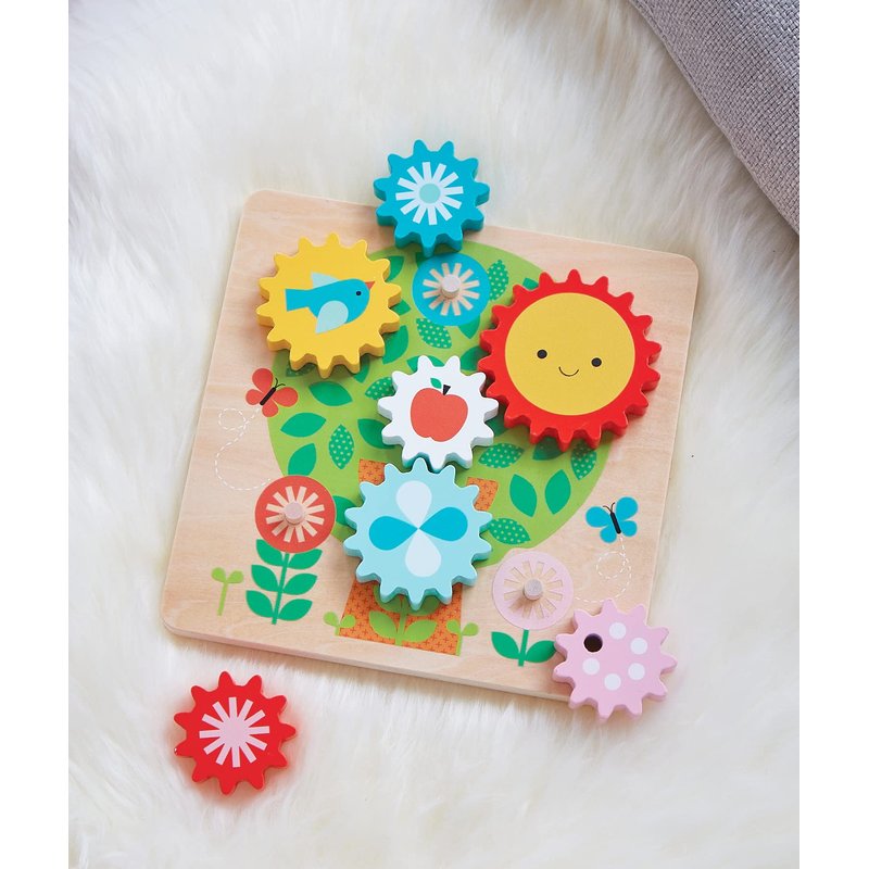 - CLASSIC PUZZLE WITH A TWIST – This Busy Tree wooden puzzle features 7 chunky gear-shaped pieces. Turn one puzzle piece and the interlocking gears will set the whole puzzle in motion.