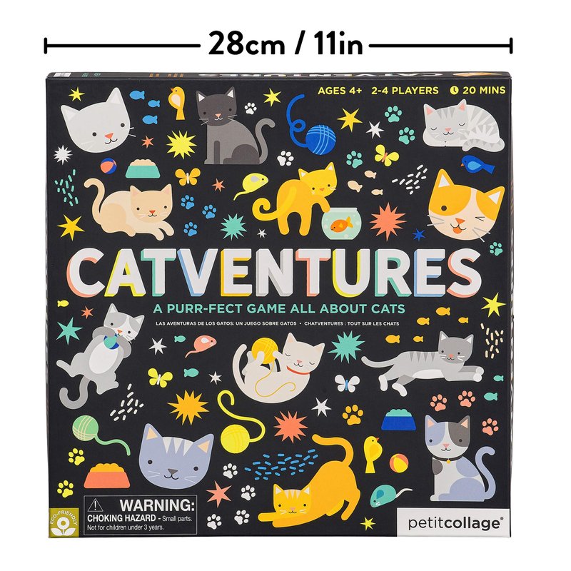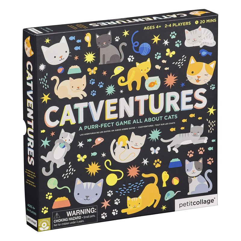 - FUN CAT BOARD GAME – The Catventures Board Game from Petit Collage is an a-meow-sing kid’s game that will test just how well you know cats and the adventures they get into!