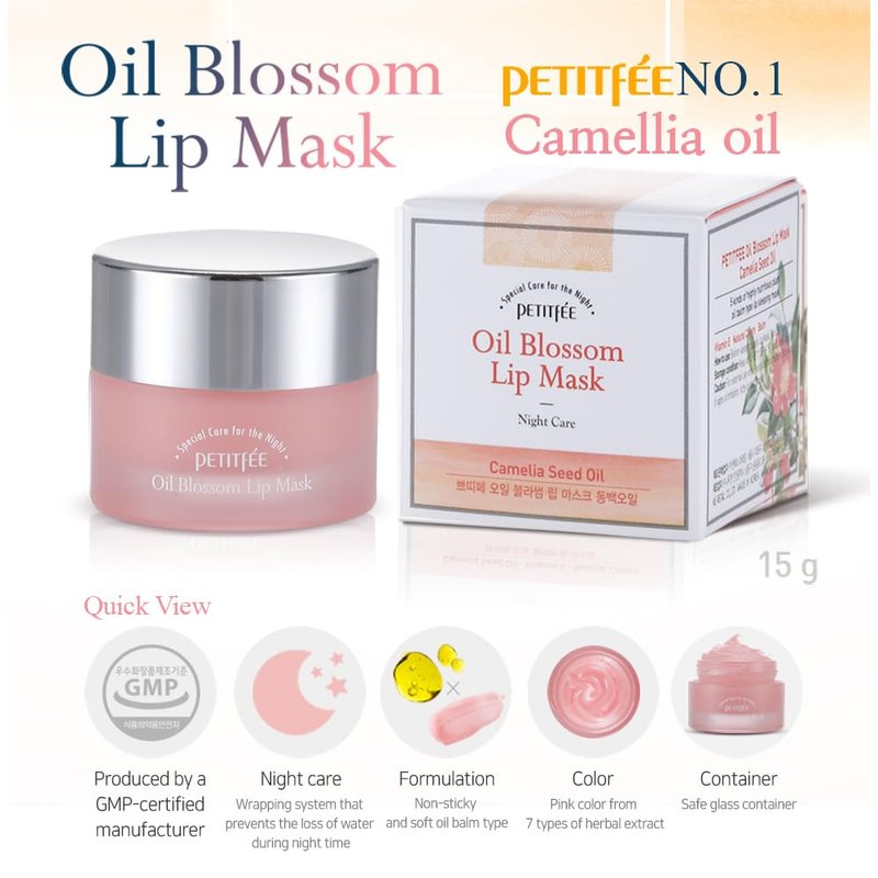 PETITFEE Sleeping Lip Mask Camelia Seed Oil 0.53 Oz. | Day & Night Repairing Balm, Overnight Lip Mask, Lip Treatment for Dull & Dry Lip, Deep Nourishing with Vitamin E, 5 Phyto Oil Complex
