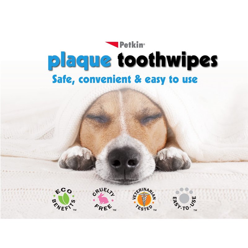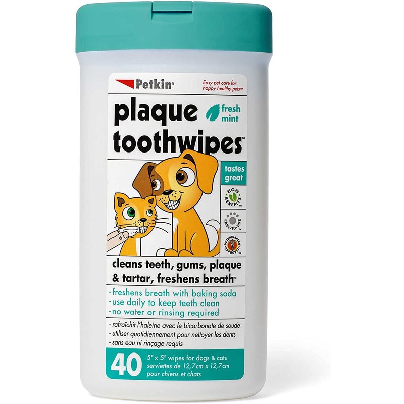 - Cleans Teeth and Gums - Petkin's Fresh Mint Plaque Tooth Wipes keep your dog and cat's teeth and gums clean, and their breath minty fresh! An effective way to achieve great oral hygiene daily. Includes 1 pack of 40 finger wipes.