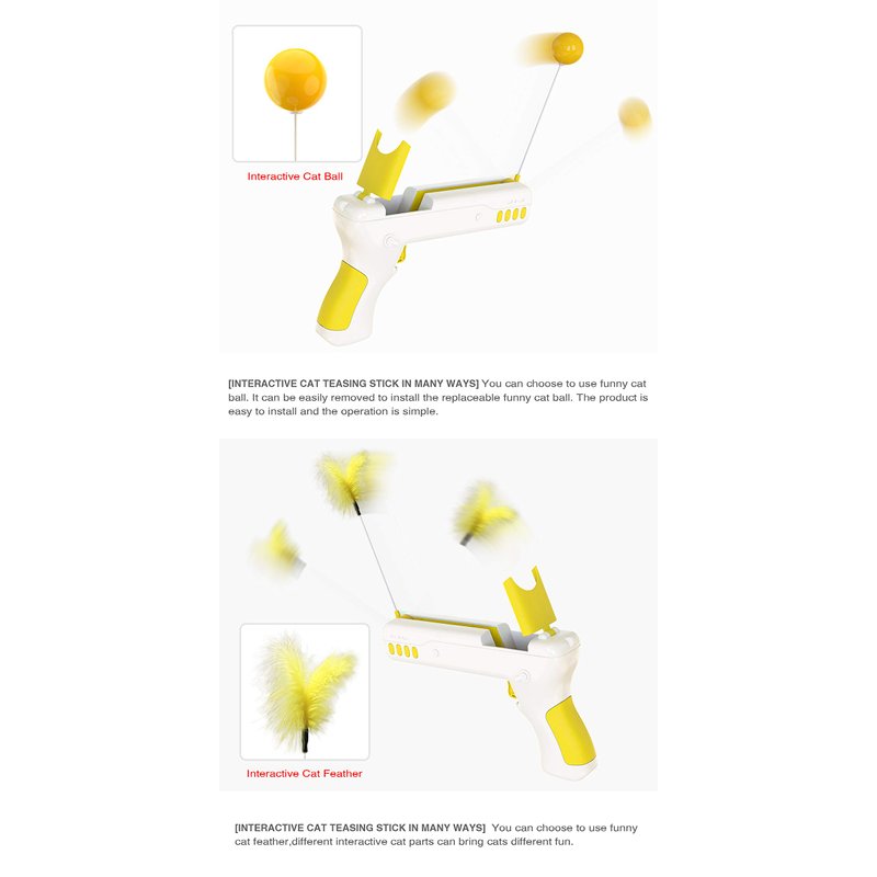 Feather Wand Toy: Feather wand toys are a popular choice for interactive play with cats. They typically consist of a long wand with feathers or other enticing attachments at the end. To use, you simply hold the wand and move it around to mimic the movements of prey. Cats love to pounce, bat at, and chase the feathered end. These toys are easy for owners to control and can provide hours of entertainment for cats. Automatic Ball Launcher: Automatic ball launchers are devices that throw balls for your cat to chase and retrieve. Many of these devices have adjustable settings for launch distance and can be set up indoors or in the yard, depending on the model. Owners can initiate the play by loading the ball into the launcher and activating it, or some models can be set on an automatic timer. Cats often enjoy the unpredictability and challenge of chasing a moving ball. Here are some specific products you can consider: Feather Wand Toy: Look for options like the "Da Bird" interactive feather wand toy, which is highly regarded among cat owners for its effectiveness in engaging cats. Automatic Ball Launcher: Brands like "PetSafe" and "iFetch" offer automatic ball launchers designed for both cats and small dogs. They come in different sizes and features. Always ensure the safety of your cat during playtime by supervising them and using toys that are designed with their safety in mind. Additionally, consider your cat's activity level and preferences when choosing the right interactive toy. Remember that interactive play is an essential part of keeping your cat mentally and physically stimulated, so investing in the right toys can contribute to a happy and healthy feline friend.