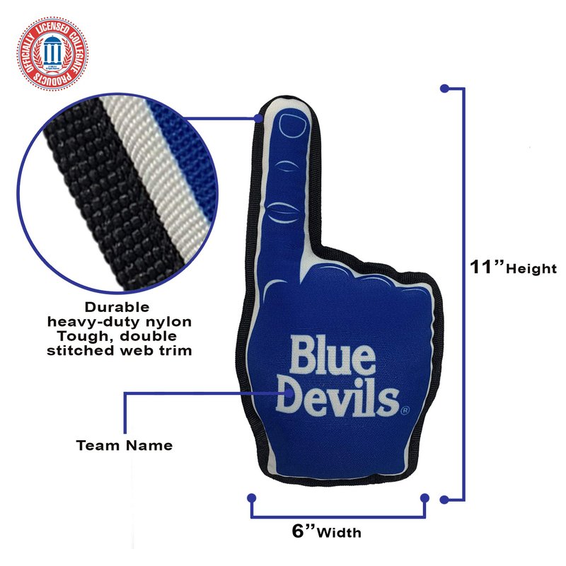 Pets First NCAA Duke Blue Devils #1 Fan Toy. Best Sports Dog Toy with Double Stitched Trim and Tough Nylon Material Filled with Chewable Polyfil and Inner Squeaker