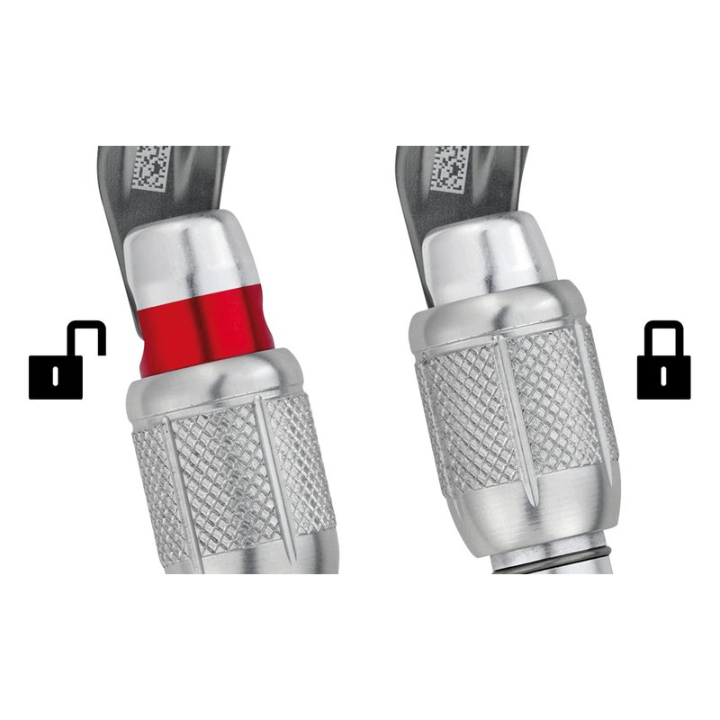 - SCREW-LOCK: the manual screw-lock with red band provides a visual warning when the carabiner is unlocked