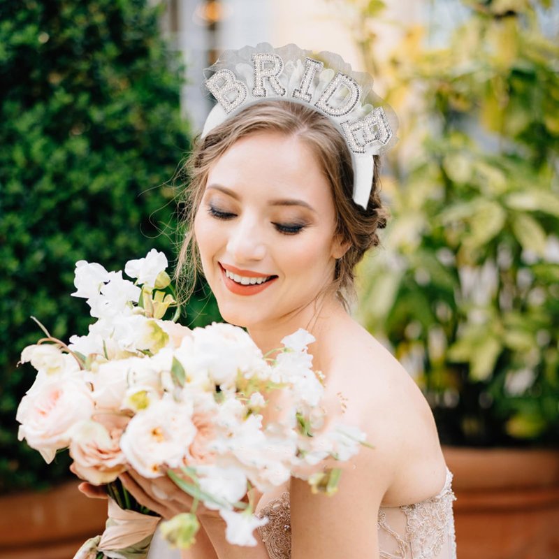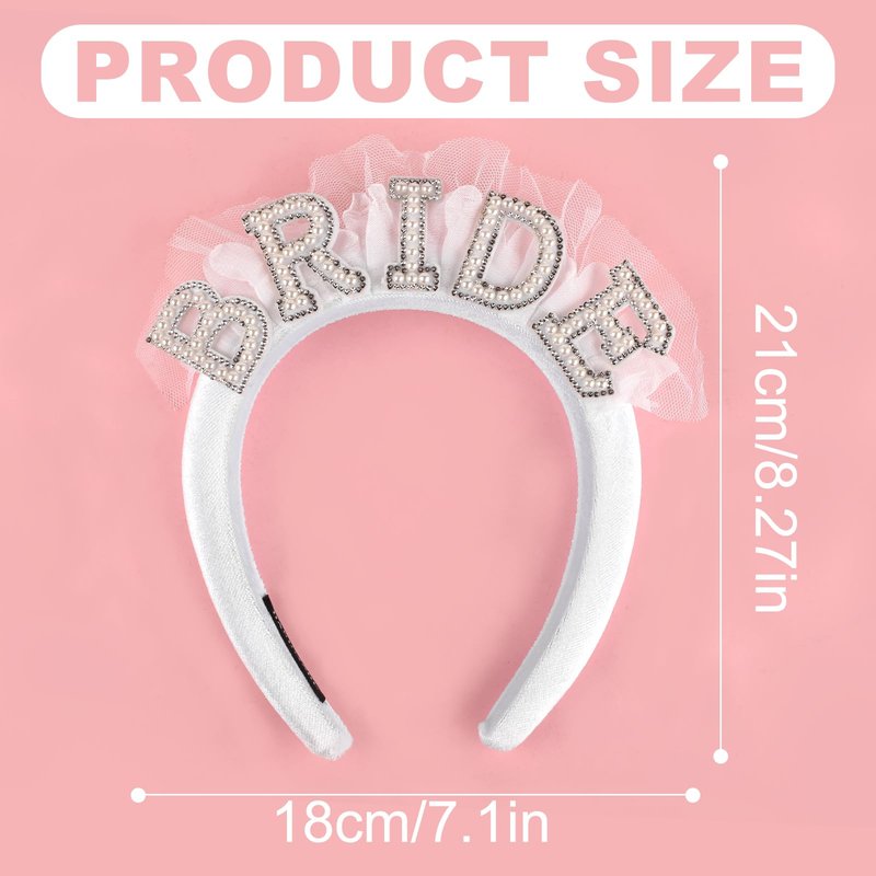 - Cute Design: This headband is designed with the word "BRIDE", which is assembled by pearls and rhinestones, with white veil as embellishment, romantic and beautiful, making you eye-catching and charming.