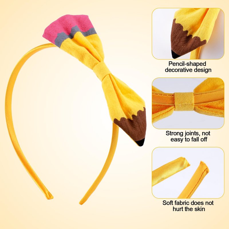 PEUTIER Yellow Pencil Headband, Cute Back to the School Headband Pencil Bow Hair Band Return to School Hair Accessories Gifts for Student Birthday Party Supplies