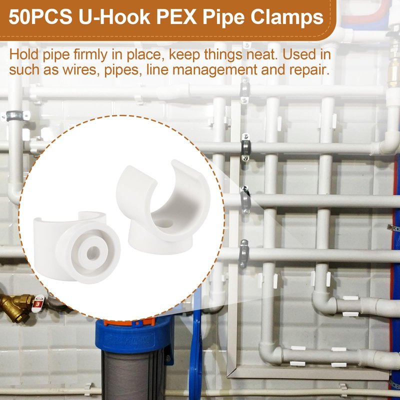 PEX Pipe Clamp Clip, 50Pcs 1/2 Inch PEX Clamp For PVC Water Pipes & Tubing Hoses Hangers Clips Holder Support Bracket Socket, White Plastic U Pipe Clamp Tools