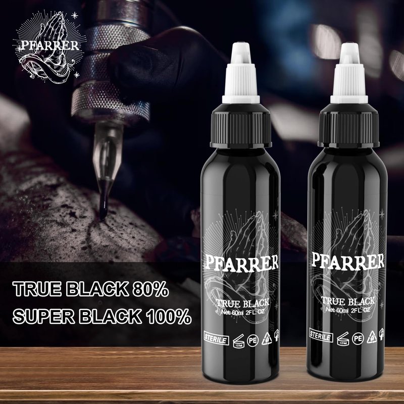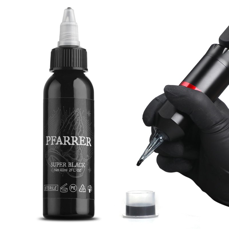 - New Brand PFARRER, A homogenized carrier/pigment mixture black tattoo ink that flows easily