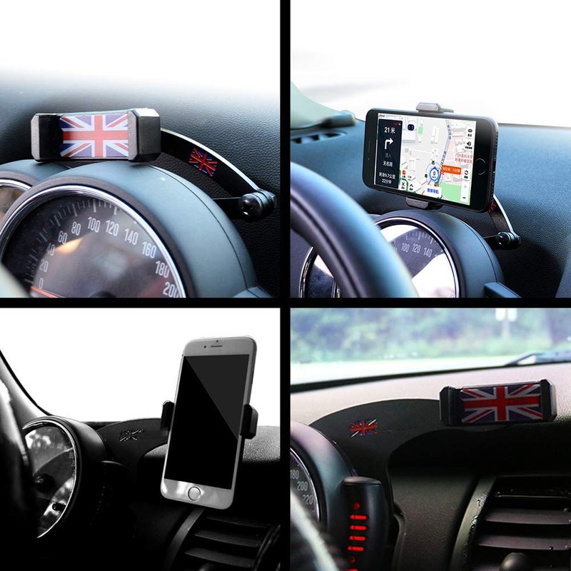 PGONE Smartphone Cell Phone Holder with Cradle Rotatable Clip (Union Jack Flag Style, 3.5-5.5 Inch Phone) for Mini Cooper R55 R56, 1 Pack (Red & Blue Union Jack Flag Style)