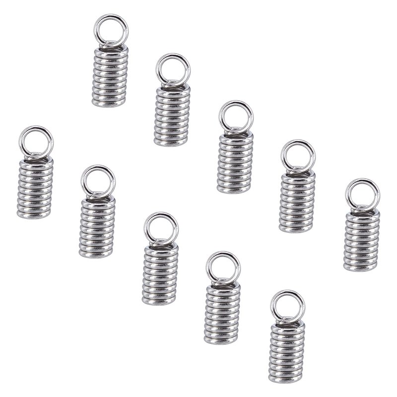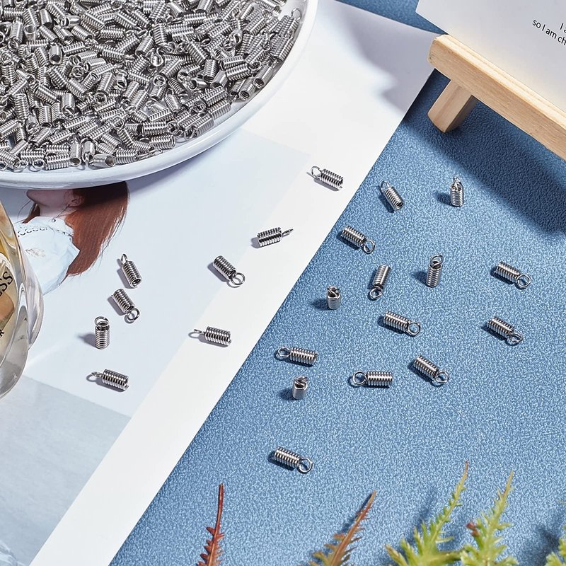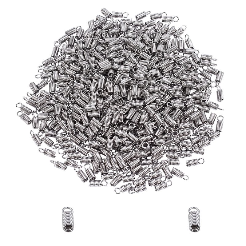 PH PandaHall 1000pcs Stainless Steel Coil Cord Ends 2.5mm Inner Diameter Mini Tube Cord Cap Tip Leather Cord Ends Caps 10mm Long Necklace Spring Fastener Crimp Clasp for Jewelry Making