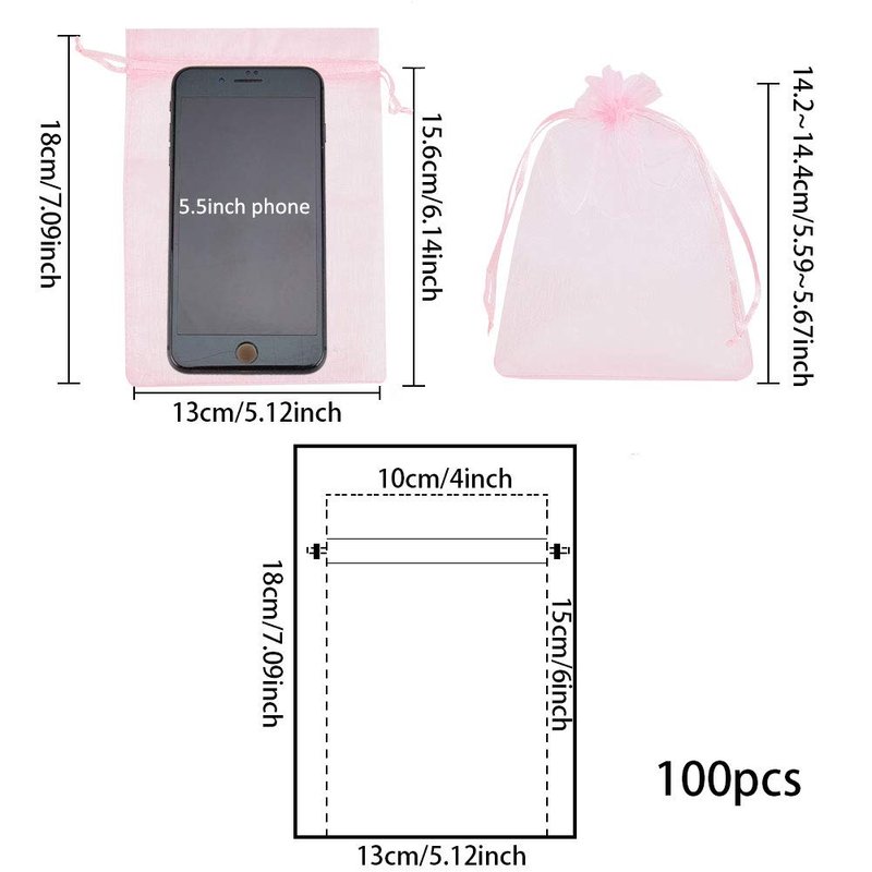 - Size & Material: about 18cm/ 7inch long, 13cm/ 5inch wide; Quantity: 100pcs organza bags. Perfect bags for gift bags for wedding favor and hold lavender and fresh rose petals on wedding ceremony. Sheer organza bags with drawstring; Color: pink color 5x7 inch organza bags.(color may vary from photo shown on our website.)