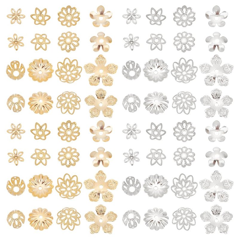 - 16 Styles End Caps: package includes 64pcs metal flower bead caps in 8 shapes, each shape 2 colors--golden and platinum, totally 16 styles, each style 4pcs; various styles meet your different needs in DIY projects.