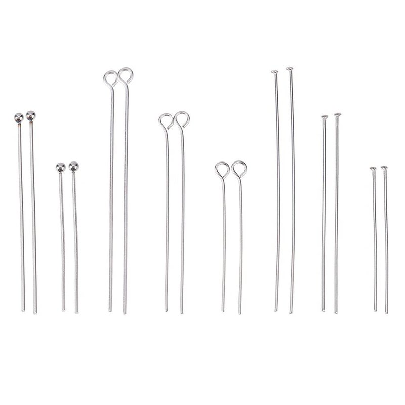 PH PandaHall 560pcs 8 Styles 304 Stainless Steel Eye Pins 30mm 40mm 50mm Head Pins Ball 22 Gauge Head Pins Findings Open Eye Pin for Earring Bracelet Pendant Jewelry Making, Stainless Steel Color