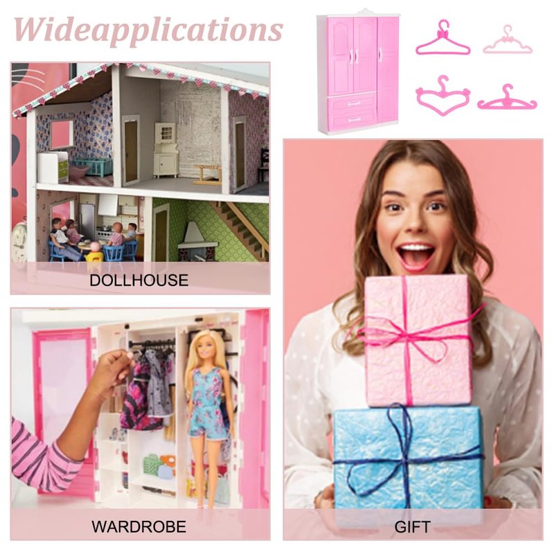 - Adorable Decoration: Mini doll wardrobe perfect for store doll clothes and jewelry, etc. It is convenient for you to quickly find the favorite doll clothes, and keep your doll house clean and tidy.