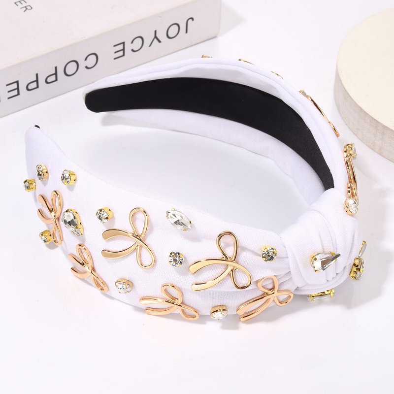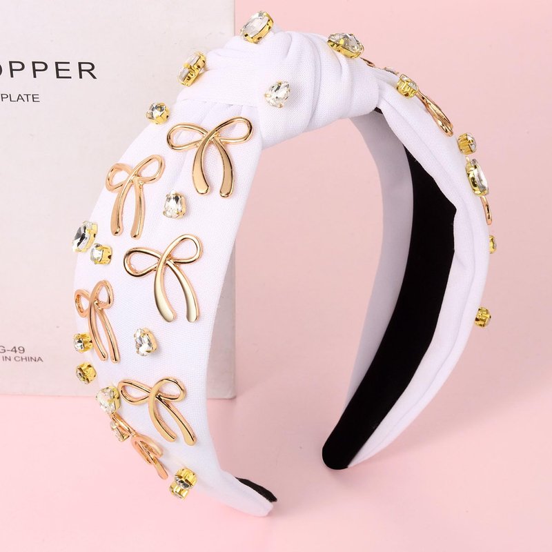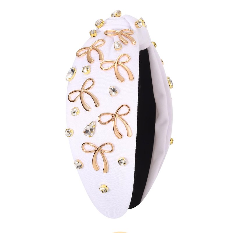 - ✔Gold Bow Headband: Discover the joy of understated beauty with our gold bow headband—an embodiment of timeless style and playful charm! Feature a white headband with trendy top knot design, embellished with gold ribbon bows and stunning rhinestone, exudes elegance and sophistication to show your charm. Whether you're attending a formal event or styling your hair for everyday wear, these glitter crystal headband complements various hairstyles and outfits add a touch of stylish to your hair, make every moment special!!