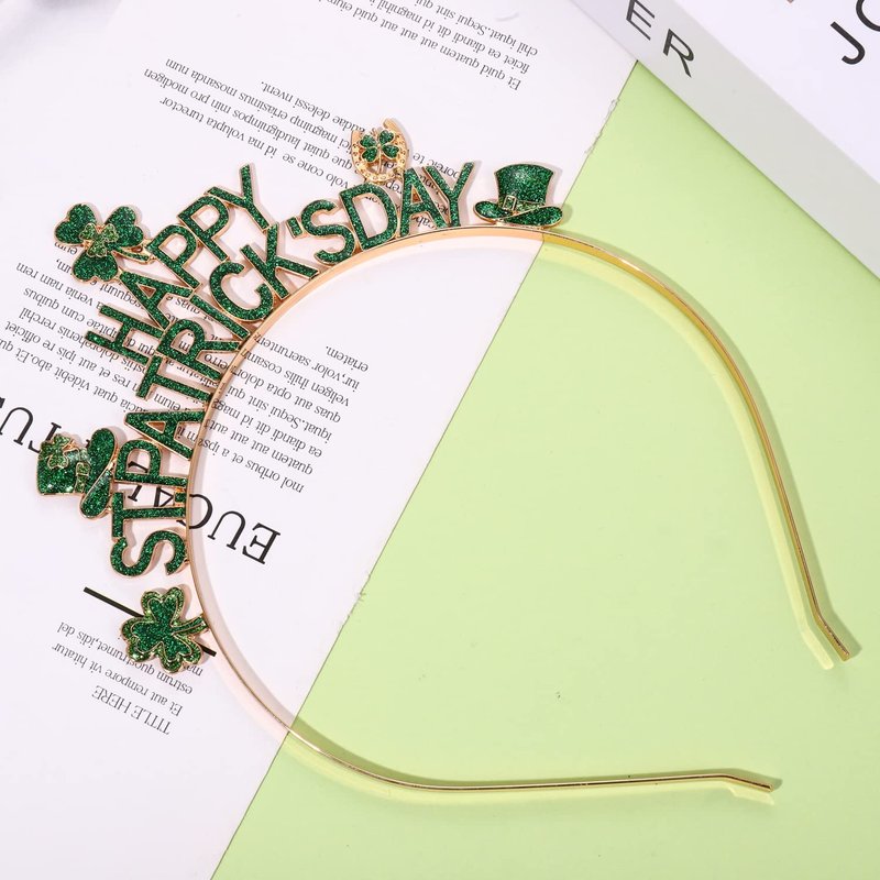 - ✔St. Patrick's Day Lucky Headband: Don't dare be caught without a little green on St. Patrick's Day! Our lucky headband feature a glitter enamel letter 'LUCKY', 'IRISH' and sparkling green shamrock charm on a gold hoop. You'll be feeling lucky all day and into the night at your next Saint Patty's day celebration or zoom call with this super comfortable headband.