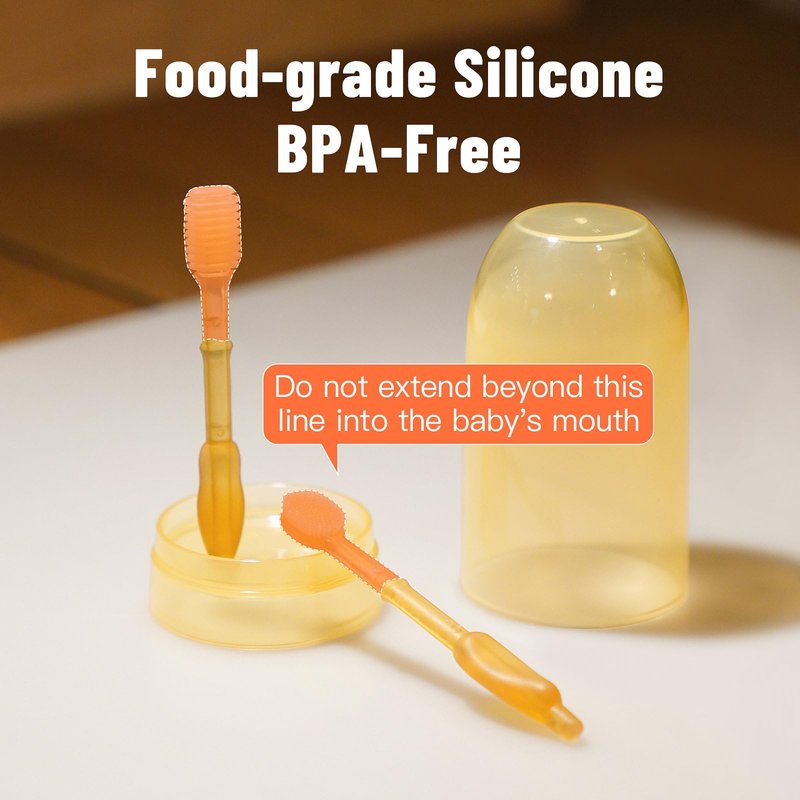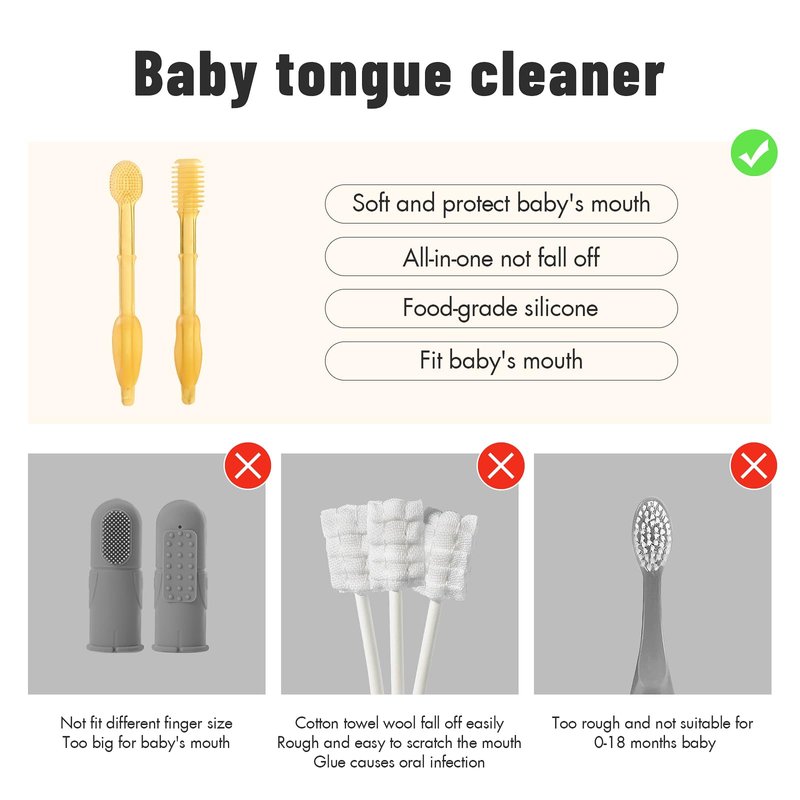 - 【Comprehensive Baby Toothbrush】- Includes baby tongue cleaner and baby toothbrush, one-piece molding without risk of falling off. With a safety prompt line to prevent accidental injury to the baby's mouth. Oral partition care is more thorough, creating a fresh oral environment. It is also conducive to the baby's cultivation of good oral hygiene habits