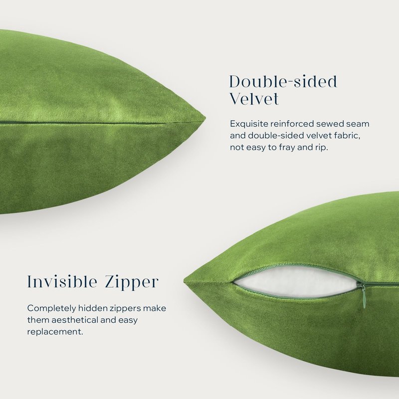 Phantoscope Pack of 2 Velvet Decorative Throw Decorative Pillow Cover Soft Solid Square Cushion Case for Couch Green 18 x 18 inches 45 x 45 cm