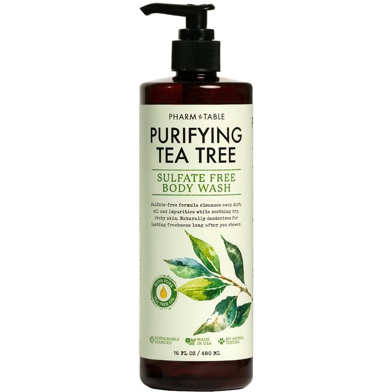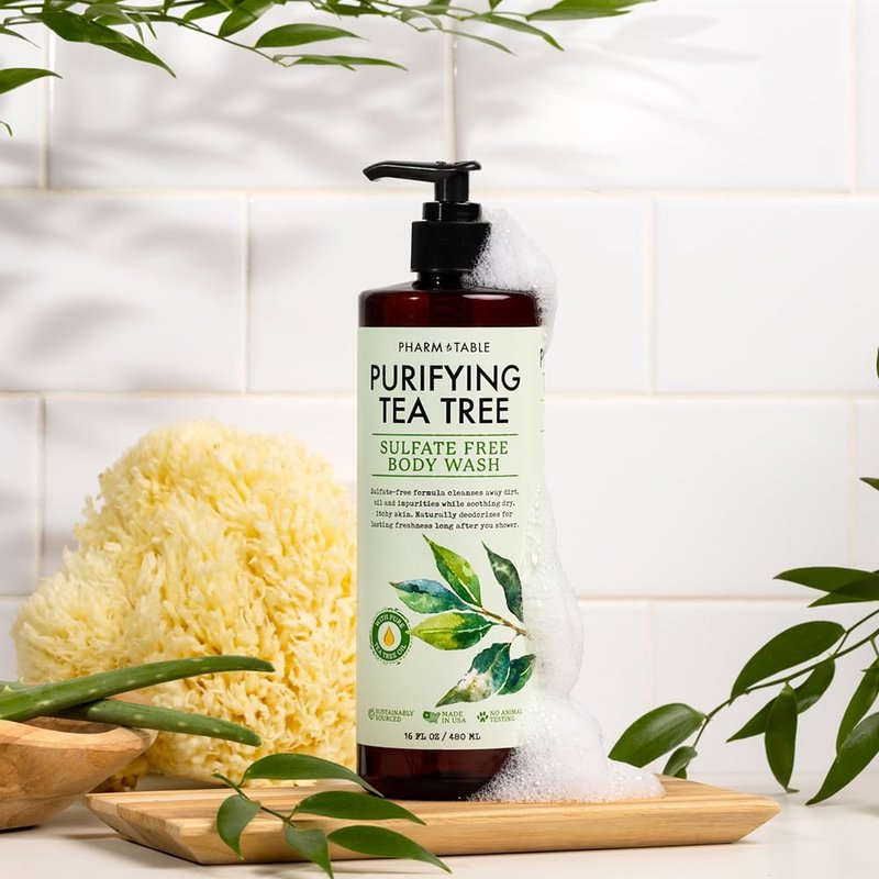 PHARM TO TABLE Soothing Tea Tree Body Wash Sulfate-Free Shower Gel – Nourishing Hydration Soothes Dry, Itchy Skin - Infused with Tea Tree oil, Mint, Vitamin E & Aloe, 16.2oz