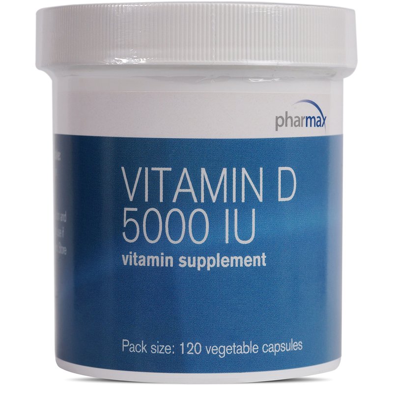 Pharmax Vitamin D 5000 IU | Supports Healthy Bones and Teeth, and Absorption of Minerals | 120 Capsules