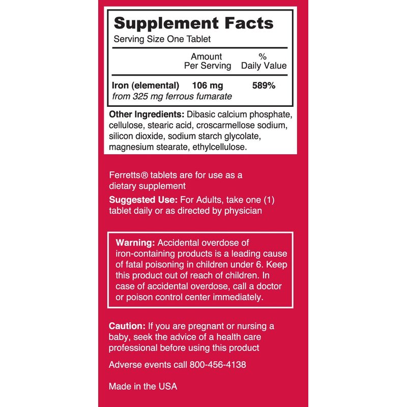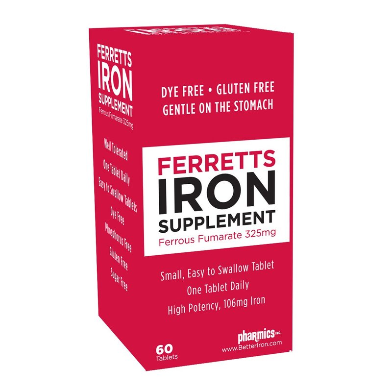 Pharmics - Ferretts Iron Supplement, High Potency 106 mg Elemental Iron - 60 tablets