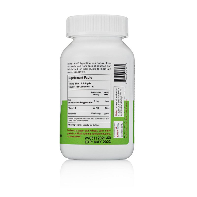 - Introducing TheHeme softgels with 4.5mg Heme Iron Polypeptide, Vitamin C and Folic Acid