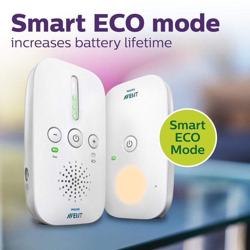 - Smart Eco mode automatically minimizes transmission power and increases battery Lifetime; the closer the parent unit is to the baby unit, the less power is needed.