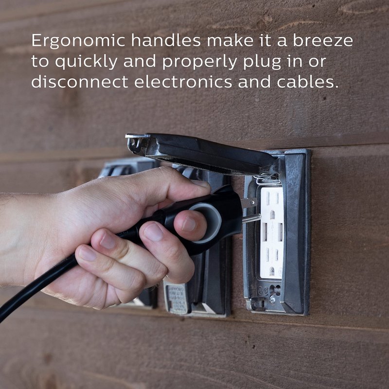 - EZGrip Design – The built-in, ergonomic handles make it a breeze to quickly and safely plug in or disconnect electronics.