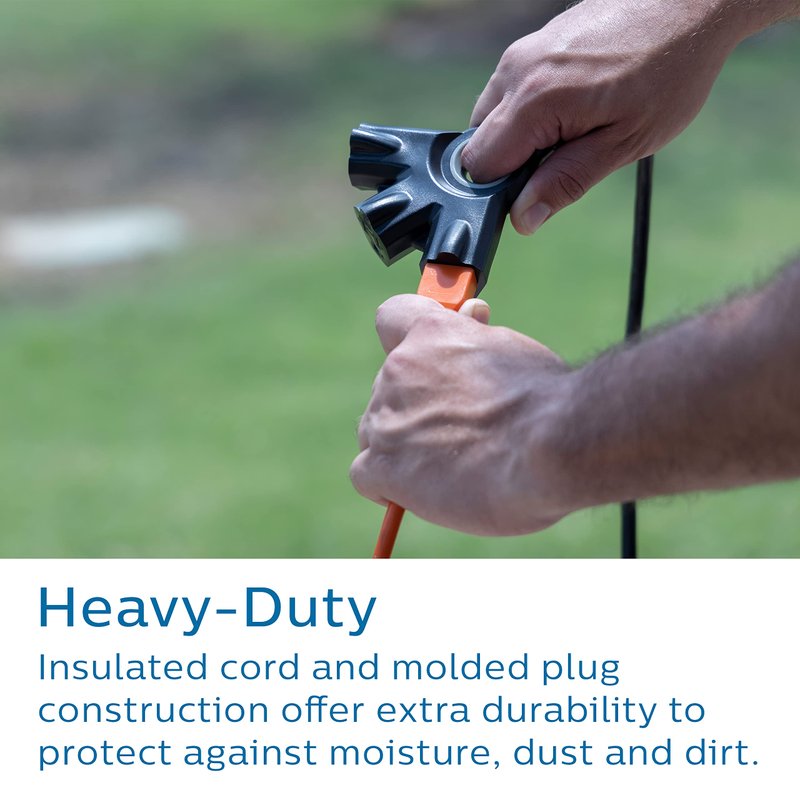 - Heavy Duty – Insulated cord and molded plug construction offer extra durability to protect against moisture, dust and dirt.