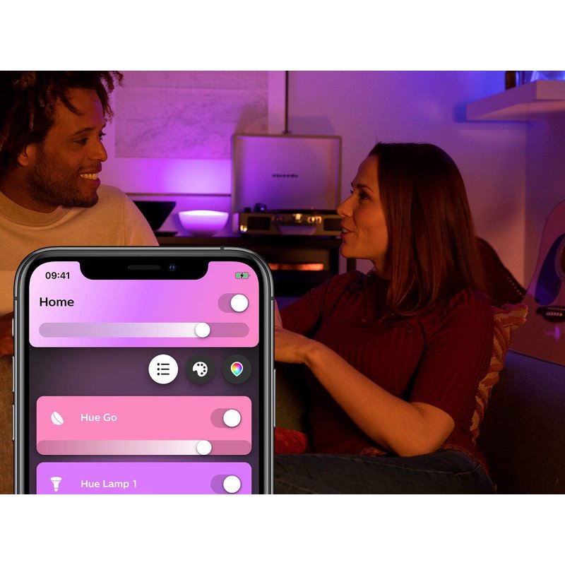 - EASY AND CONVENIENT: Control your Philips Hue Go even without your smart device at hand. Activate smart light settings directly by pressing the button on the product. Or connect with the Hue Hub (sold separately) to control with the Philips Hue App.