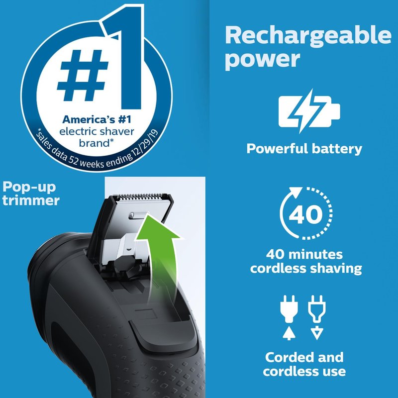 Philips Norelco Electric Shaver Trimmer Series Men's Shaver with PowerCut Blades & pop-up Trimmer