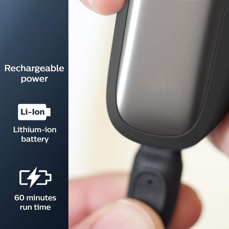 - With a powerful Li-ion battery, get up to 60 minutes of cordless shaving - about 20 shaves - on a 1-hour charge. 5-minute quick charge for one shave.