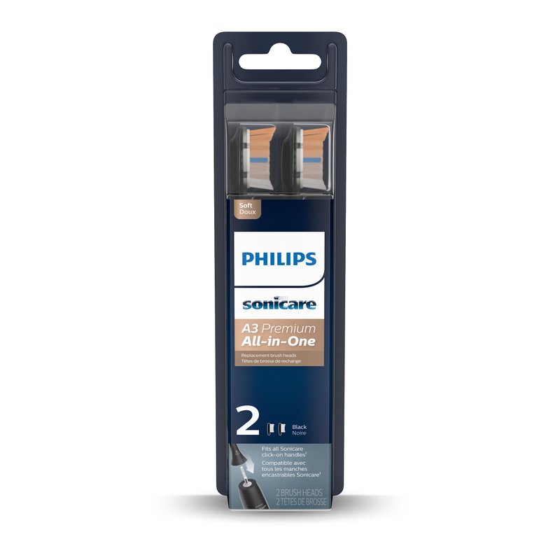 Philips Sonicare Genuine A3 Premium All-in-One Replacement Toothbrush Heads, 2 Brush Heads, Black, HX9092/95