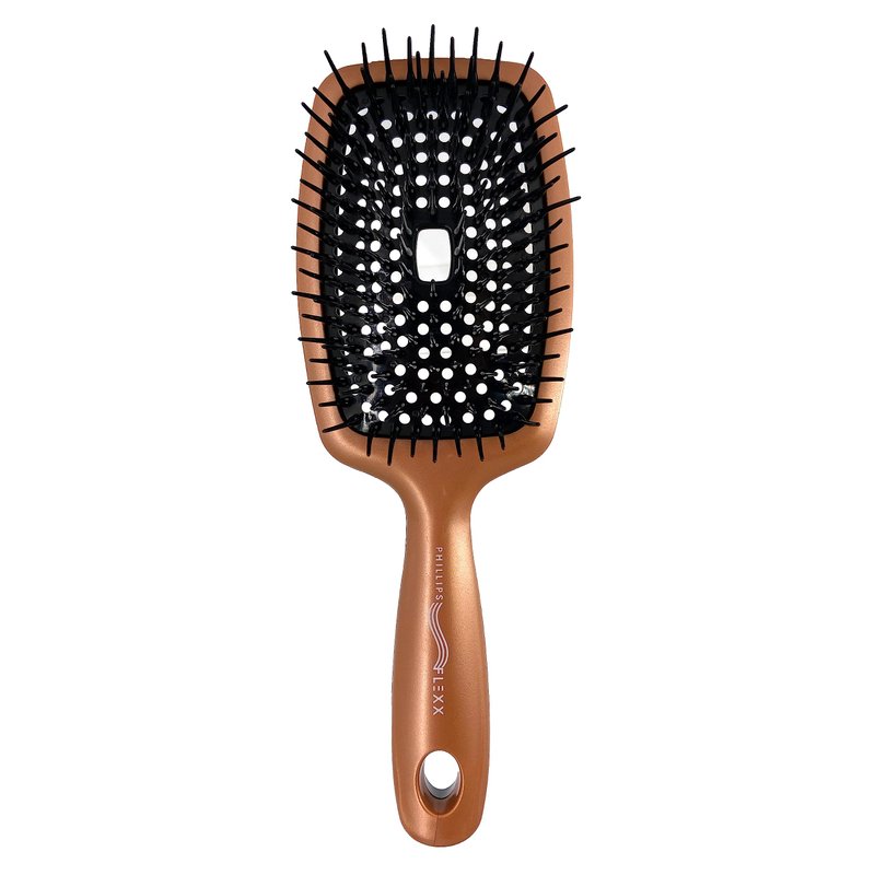 Phillips Brush Flexx Fully Vented Cushion Hair Detangling Brush, Elegantly Designed Copper & Black Flexible Wavy Hair Hairbrush