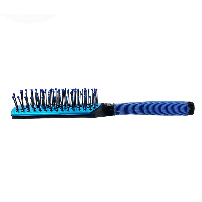 - Hairbrush head is vented constructed with an aluminum base to quickly absorb heat when used with blow dryer, speeding up your blow-drying process and saving you time! Rubber handle grip prevents heat from transferring to your hand