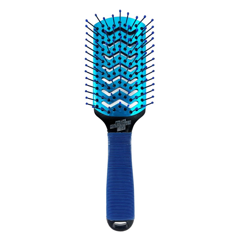 The Phillips Brush Hot Styler Maxi Metal Vented Hair Brush for blow drying is the ideal tool for stylists, cosmetologists, beauty professionals, and regular at home users alike! This new addition to the Phillips family of hair brushes is the larger version of the Hot Styler brush! This lightweight brush features a wraparound rubber grip handle that is comfortable in your hand and allows for a secure grip on the brush. This rubber helps to prevent transferred heat from a blow dryer from reaching your hand. The lightweight build also helps reduce arm fatigue from extended periods of use. “W” shaped vents throughout the metal base of the brush head are designed for maximum airflow. These vents allow hot air from a blow dryer to pass through the body of the brush and heating up the aluminum base on the head of the brush. This helps to dry your hair significantly faster than with just a blow dryer alone. The front side of the brush is lined with anti-static ball tipped nylon bristles that work to create the most comfortable brushing experience possible. This also makes styling a breeze for professionals and amateurs! Give it a try and it is sure to become your new styling or bangs brush! Designed in the USA by the hair care experts at Phillips Brush. Trusted by Professionals; Designed for your Home.
