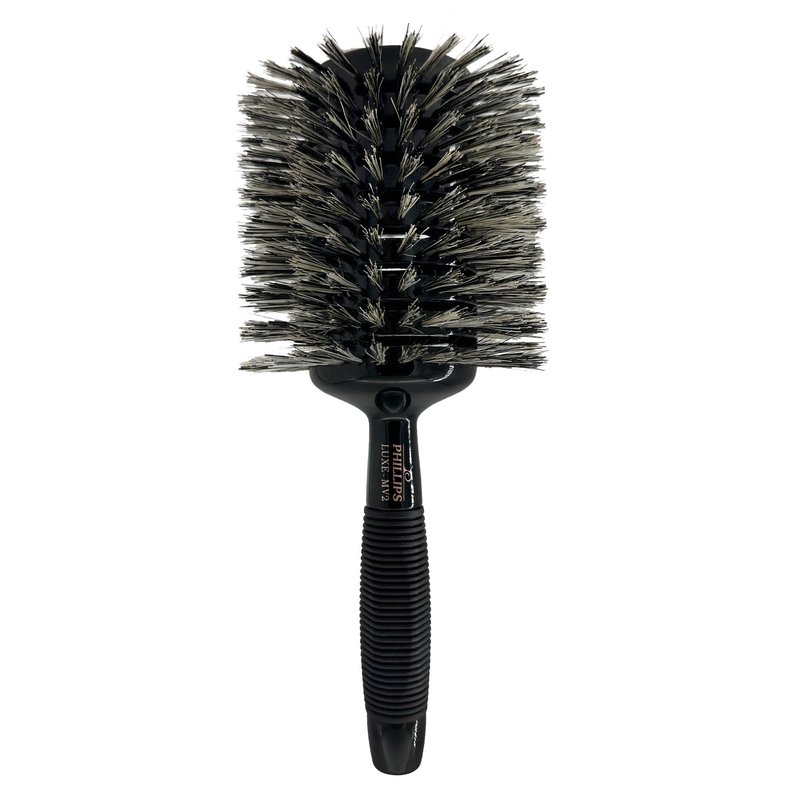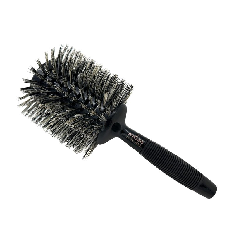 The Phillips Brush Monster Vent 2 from the Luxe Line is the round styling brush of salon professionals. The round brush head of this luxurious brush consists of reinforced bristles and is fully vented to provide the best styling experience & provide fast, efficient drying results. The head is also hollow to reduce the handling weight. The handle is countered and topped with a rubber grip to provide the best comfort without sacrificing control while you are styling. This brush is from the Luxe Series by Phillips Brush Co. Sleek black & gold colorway offers a look of elegance and refined taste.