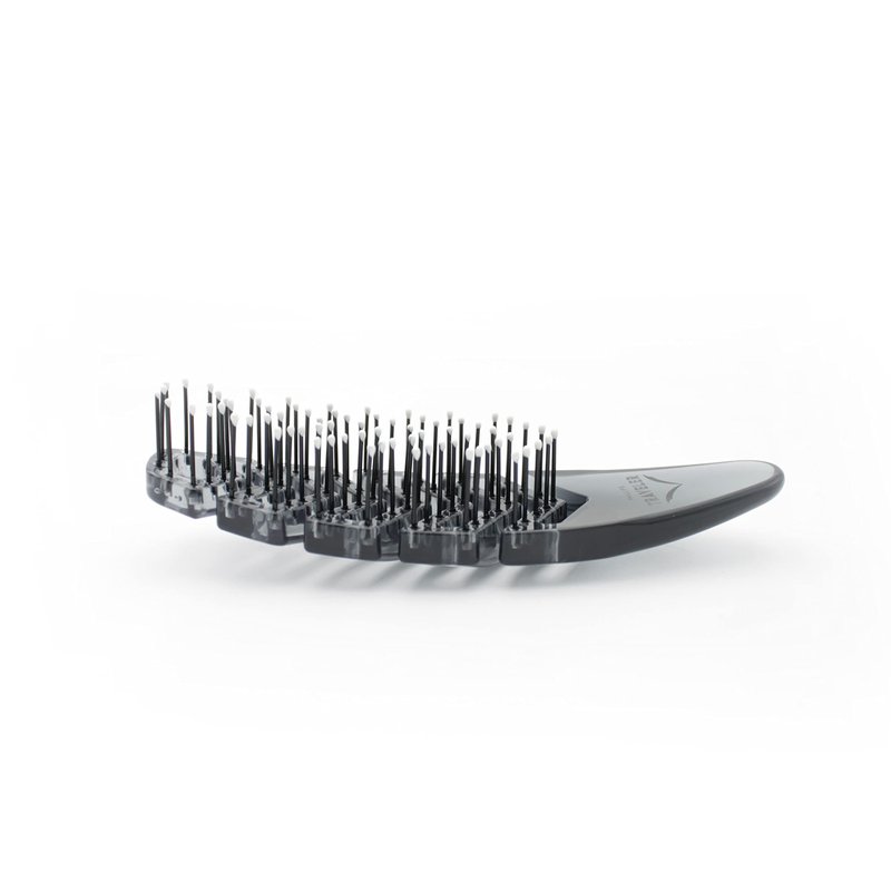 - The unique gently curved & flexible brush body contours to the shape of your head for a comfortable brushing experience that is unparalleled. The Traveler brush bends to the natural shape of your head, gently gliding through each hair and massaging your scalp along the way.
